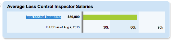 Simply Hired says the average salary for a commercial insurance loss control inspector is $59,000.