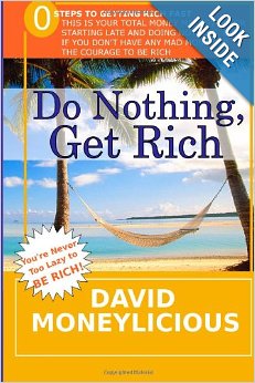 “Do Nothing, Get Rich is for YOU! Do you dream of money pouring into your bank account, even though your only skill is the ability to fall asleep while the television blares in the background? You say to me, “David, I have no skills.” I say to you, “It doesn’t matter, you can still be rich. Maybe.” You say to me, “David, I don’t want to work in a stodgy office where I actually have to show up at a certain time. Plus, the only clothes I own are some t-shirts and a pair of sweatpants.” I say to you, “Focus. Do you have $4.99? Can you at least borrow it from your mother or other relative who would gladly pay for the privilege of not having to interact with you? If so, get out there and buy your non-refundable copy of the newest Best-Seller, Do Nothing, Get Rich.” You say to me, “David, I’m not motivated at all. I barely have the will to live.” I say to you, “You’re my target audience.” All you need to do is buy a copy of my book, “Do Nothing, Get Rich” and you may very possibly become rich. Buy Do Nothing, Get Rich TODAY! Buy! Do Nothing, Get Rich! Buy it TODAY!! Do Nothing, Get Rich! Do Nothing, Get Rich!”