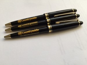 I have three of these collectible Countrywide ballpoint pens (shown in the photo) in excellent condition. These are collector ballpoints. The ink is dry … they need new refills. They look similar to a Montblanc ballpoint … but, cheaper quality. The package of 3 ballpoint pens is $150. These are a rare find.