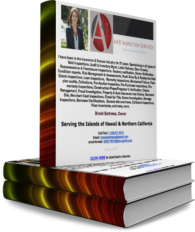 Brook Wrote The Book On Hawaii Field Inspections … 27 Years Of Experience … Brook Advertises At www.fieldinspector.BIZ Richard LawOctober 9, 2019General Reading Post navigation PreviousNext Share this: Email a link to a friend (Opens in new window) Email Print (Opens in new window) Print Share on X (Opens in new window) X Share on Facebook (Opens in new window) Facebook Share on Pinterest (Opens in new window) Pinterest Like Loading... Related