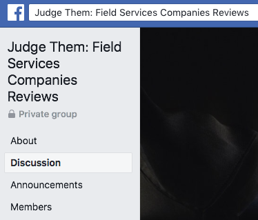 Facebook Group … Judge Them: Field Services Companies Reviews … This Is A Good Facebook Group To State Your Problems With Field Service Firms Richard LawNovember 12, 2019General Reading Post navigation PreviousNext Share this: Email a link to a friend (Opens in new window) Email Print (Opens in new window) Print Share on X (Opens in new window) X Share on Facebook (Opens in new window) Facebook Share on Pinterest (Opens in new window) Pinterest Like Loading... Related