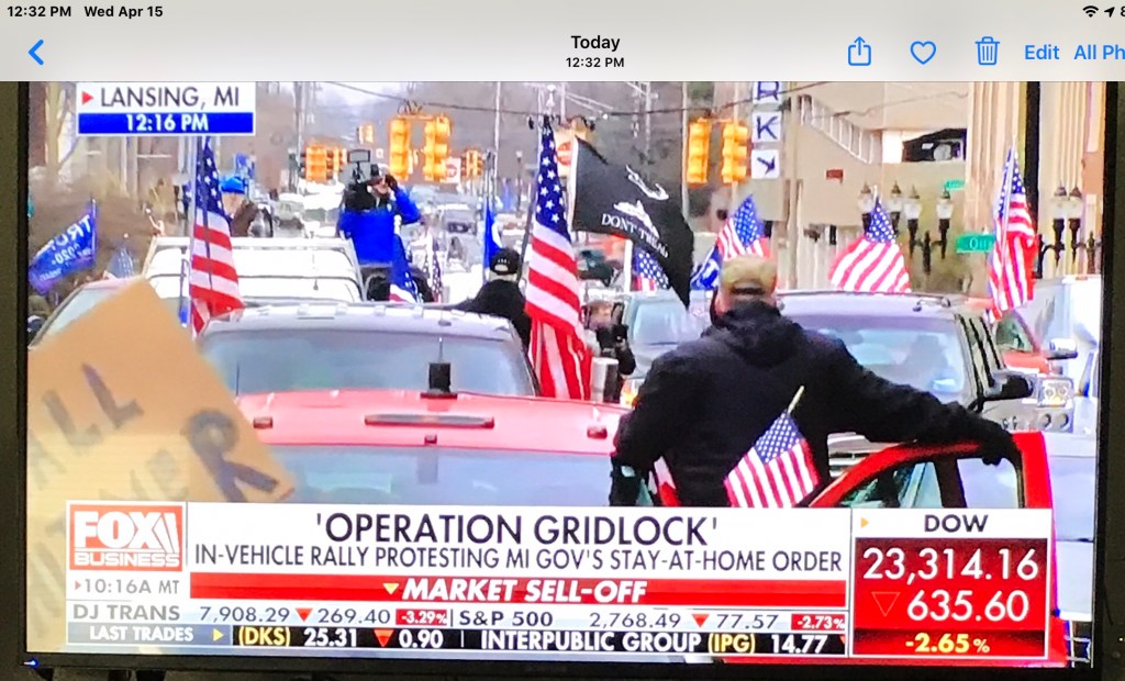 Michigan Protest Wednesday … Governor Stay At Home Order … Operation Gridlock … No Paid Lawn Cuts In Michigan … Watch The Video Richard LawApril 15, 2020April 15, 2020General Reading Post navigation PreviousNext Share this: Email a link to a friend (Opens in new window) Email Print (Opens in new window) Print Share on X (Opens in new window) X Share on Facebook (Opens in new window) Facebook Share on Pinterest (Opens in new window) Pinterest Like Loading... Related