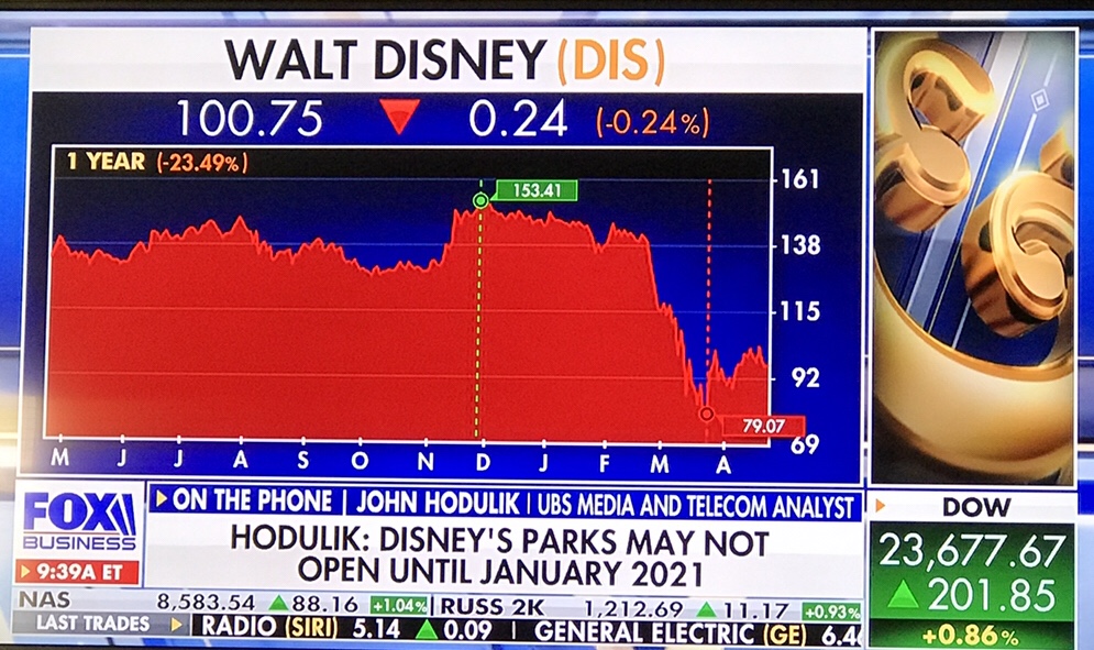 Stock Market Analyst Says Disney Theme Parks May Not Open Until January 2021 Richard LawApril 23, 2020General Reading Post navigation PreviousNext Share this: Email a link to a friend (Opens in new window) Email Print (Opens in new window) Print Share on X (Opens in new window) X Share on Facebook (Opens in new window) Facebook Share on Pinterest (Opens in new window) Pinterest Like Loading... Related