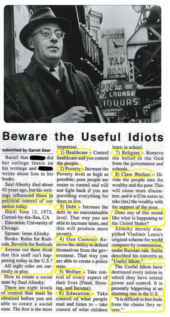 Read The writings Of Saul Alinsky About Political Control Of The US … Is This Happening Now? Richard LawJune 1, 2020General Reading Post navigation PreviousNext Share this: Click to email a link to a friend (Opens in new window) Email Click to print (Opens in new window) Print Click to share on X (Opens in new window) X Click to share on Facebook (Opens in new window) Facebook Click to share on Pinterest (Opens in new window) Pinterest Like Loading... Related