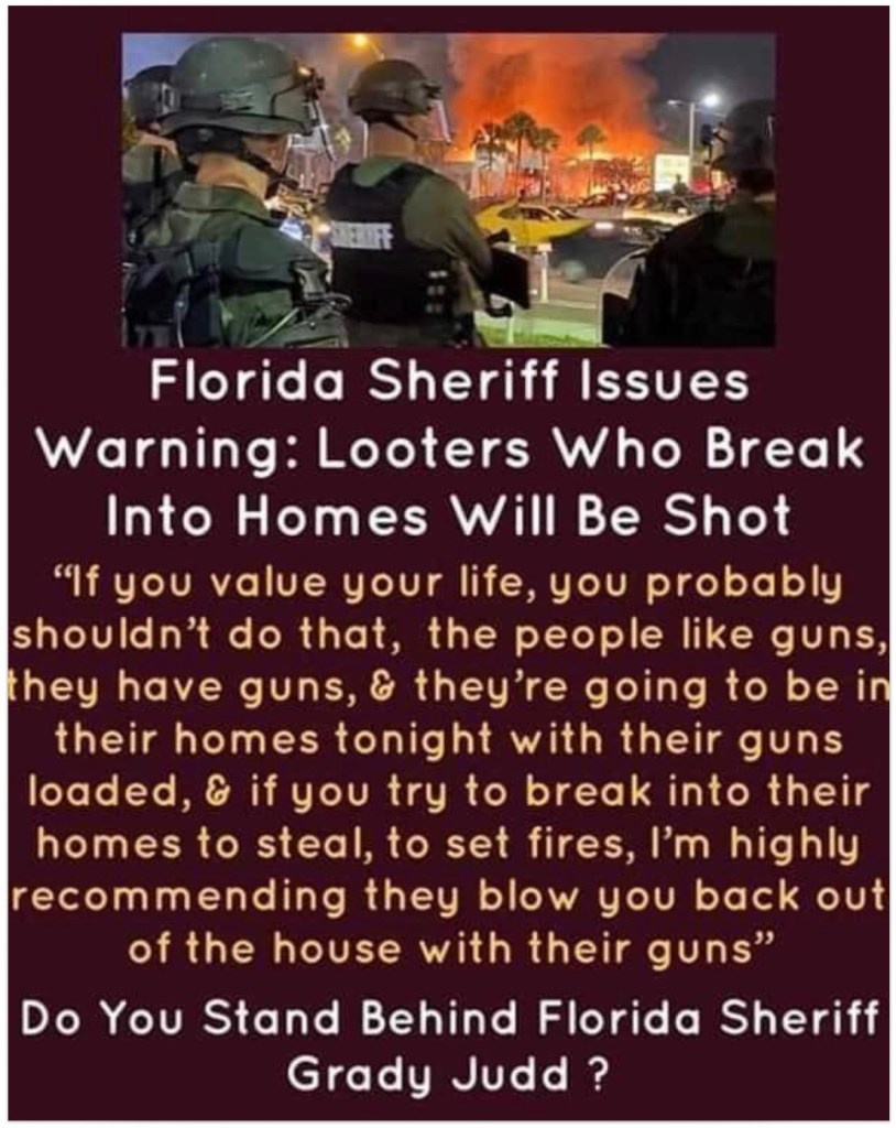 Florida Looters Will Be Shot … Some Homeowners Have 12-Gauge Shotguns With 00 Buckshot Richard LawJune 29, 2020General Reading Post navigation PreviousNext Share this: Click to email a link to a friend (Opens in new window) Email Click to print (Opens in new window) Print Click to share on X (Opens in new window) X Click to share on Facebook (Opens in new window) Facebook Click to share on Pinterest (Opens in new window) Pinterest Like Loading... Related