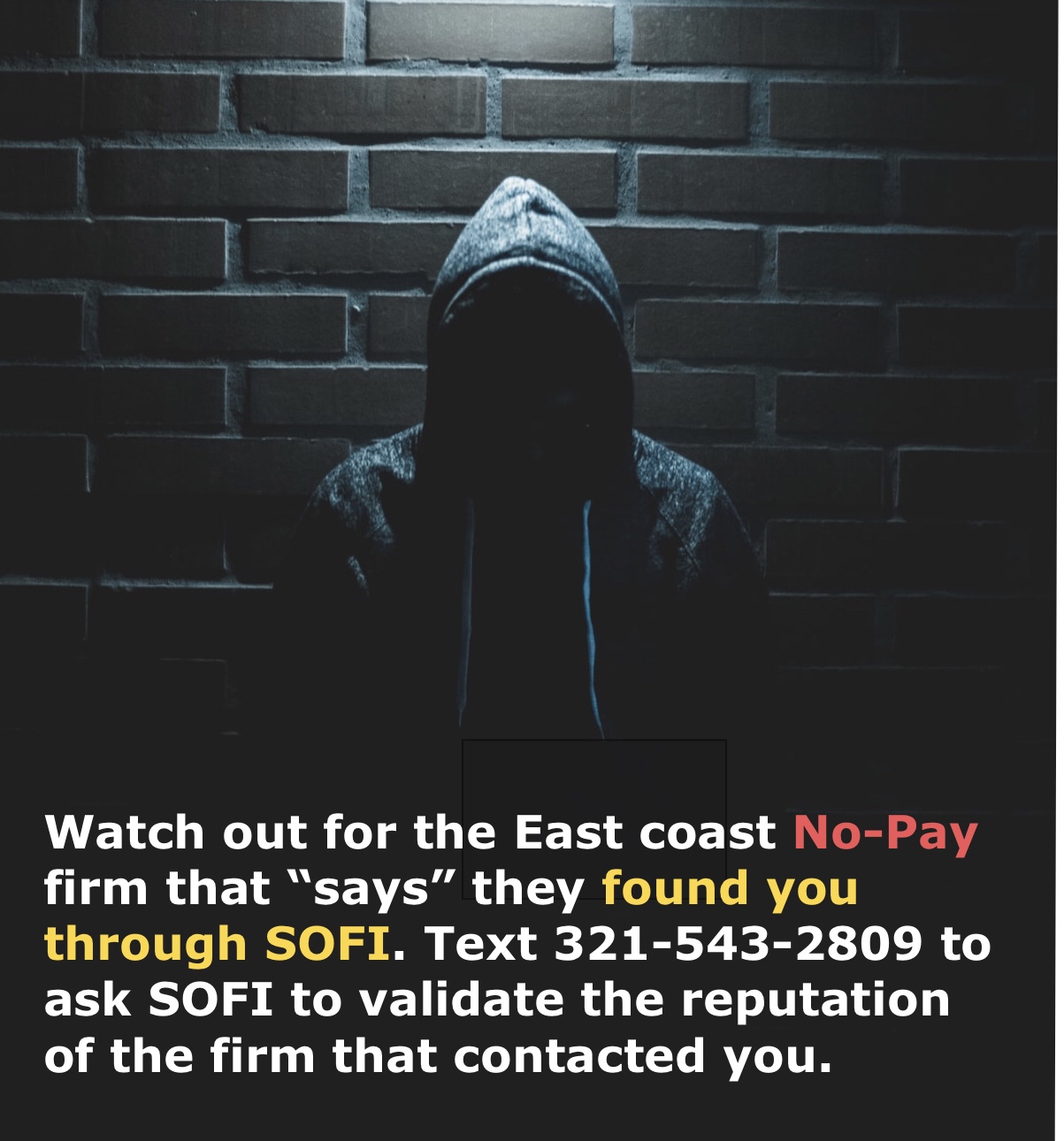 Warning … Avoid This No-Pay Firm Saying They Found You Through SOFI Richard LawOctober 7, 2020General Reading Post navigation PreviousNext Share this: Click to email a link to a friend (Opens in new window) Email Click to print (Opens in new window) Print Click to share on X (Opens in new window) X Click to share on Facebook (Opens in new window) Facebook Click to share on Pinterest (Opens in new window) Pinterest Like Loading... Related