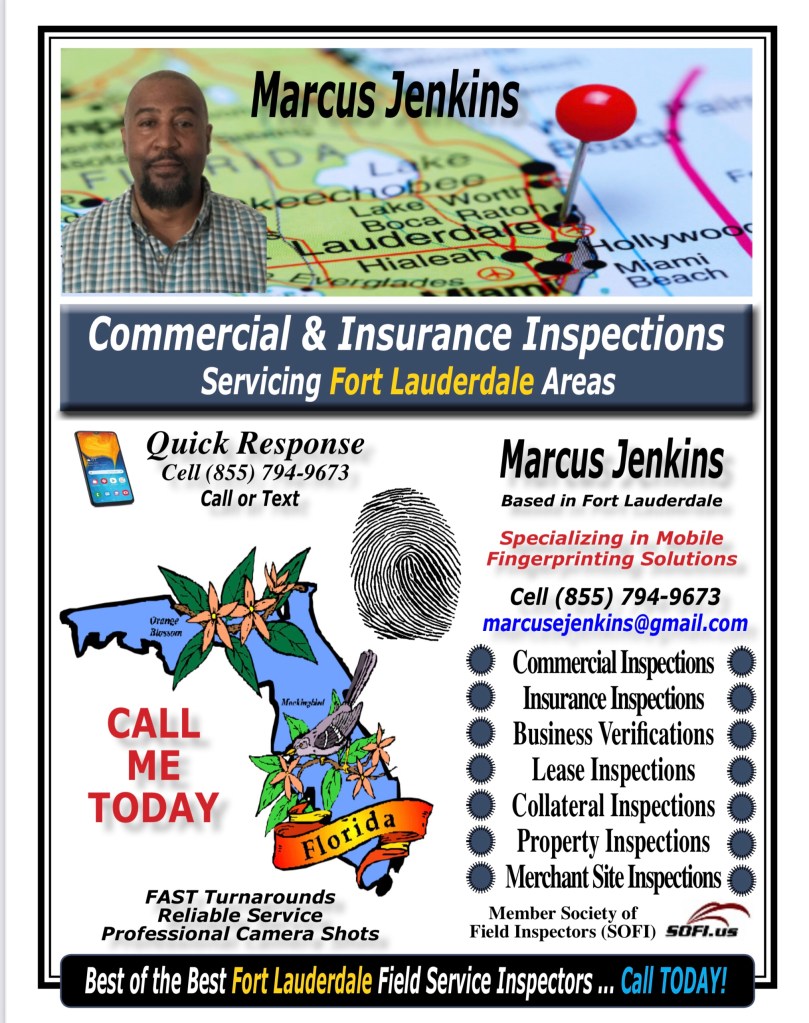 Marcus Jenkins Is Enjoying The Warm Winter Temperatures In Fort Lauderdale +++ Call Marcus TODAY +++ www.fieldinspector.com Richard LawFebruary 10, 2021General Reading Post navigation PreviousNext Share this: Click to email a link to a friend (Opens in new window) Email Click to print (Opens in new window) Print Click to share on X (Opens in new window) X Click to share on Facebook (Opens in new window) Facebook Click to share on Pinterest (Opens in new window) Pinterest Like Loading... Related