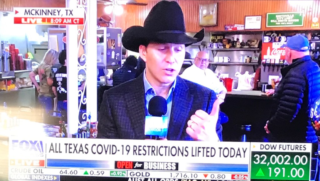 Texas Is Open For Business +++ Masks Eliminated As A Requirement Richard LawMarch 10, 2021General Reading Post navigation PreviousNext Share this: Click to email a link to a friend (Opens in new window) Email Click to print (Opens in new window) Print Click to share on X (Opens in new window) X Click to share on Facebook (Opens in new window) Facebook Click to share on Pinterest (Opens in new window) Pinterest Like Loading... Related
