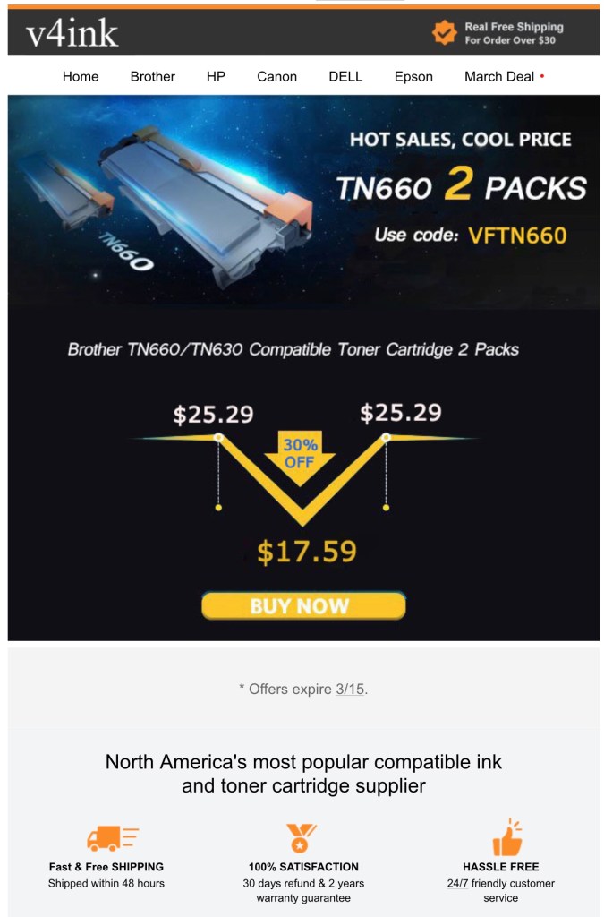 V4ink Has some Great Prices On Toner +++ SOFI Prints With Their Toner +++ You Can Also Order At Amazon Richard LawMarch 11, 2021General Reading Post navigation PreviousNext Share this: Click to email a link to a friend (Opens in new window) Email Click to print (Opens in new window) Print Click to share on X (Opens in new window) X Click to share on Facebook (Opens in new window) Facebook Click to share on Pinterest (Opens in new window) Pinterest Like Loading... Related