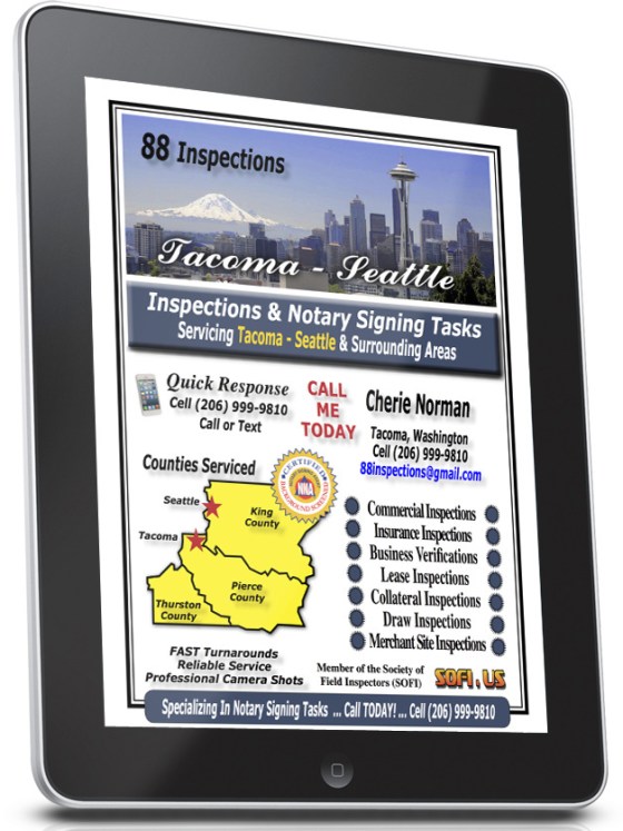 Cherie Norman Has Tacoma & Seattle Covered +++ She Advertises At www.fieldinspector.BIZ +++ She Is Available NOW!!!! For Inspections +++ Contact Her TODAY !!!!!!